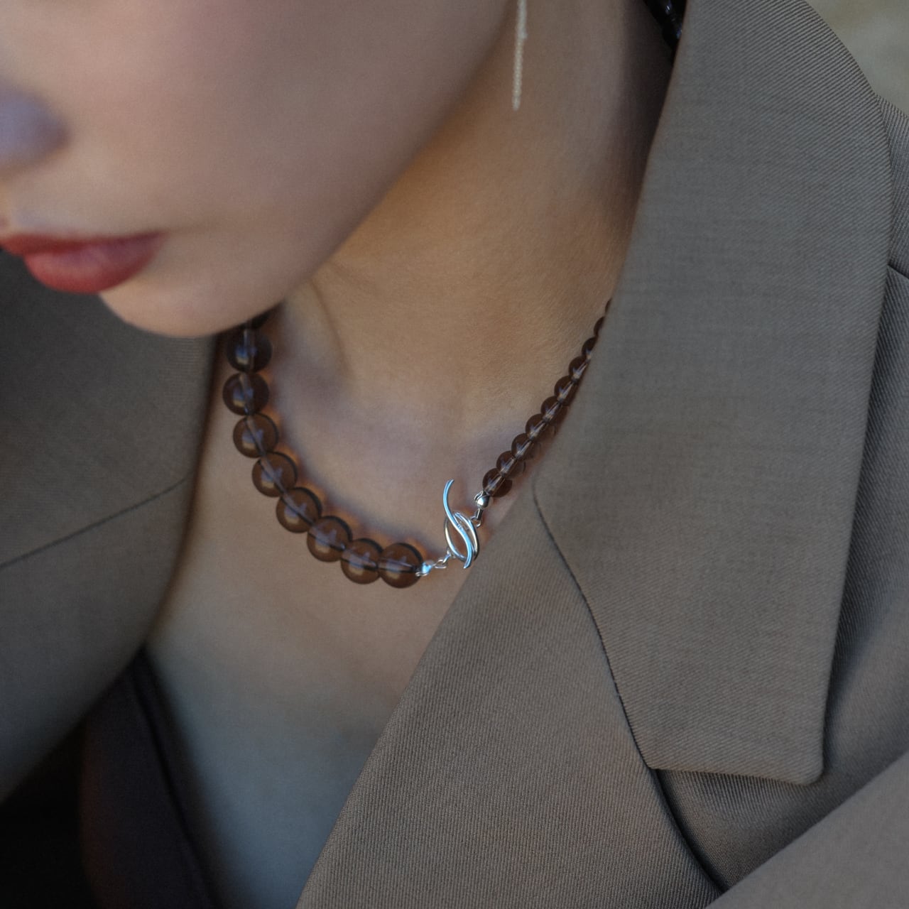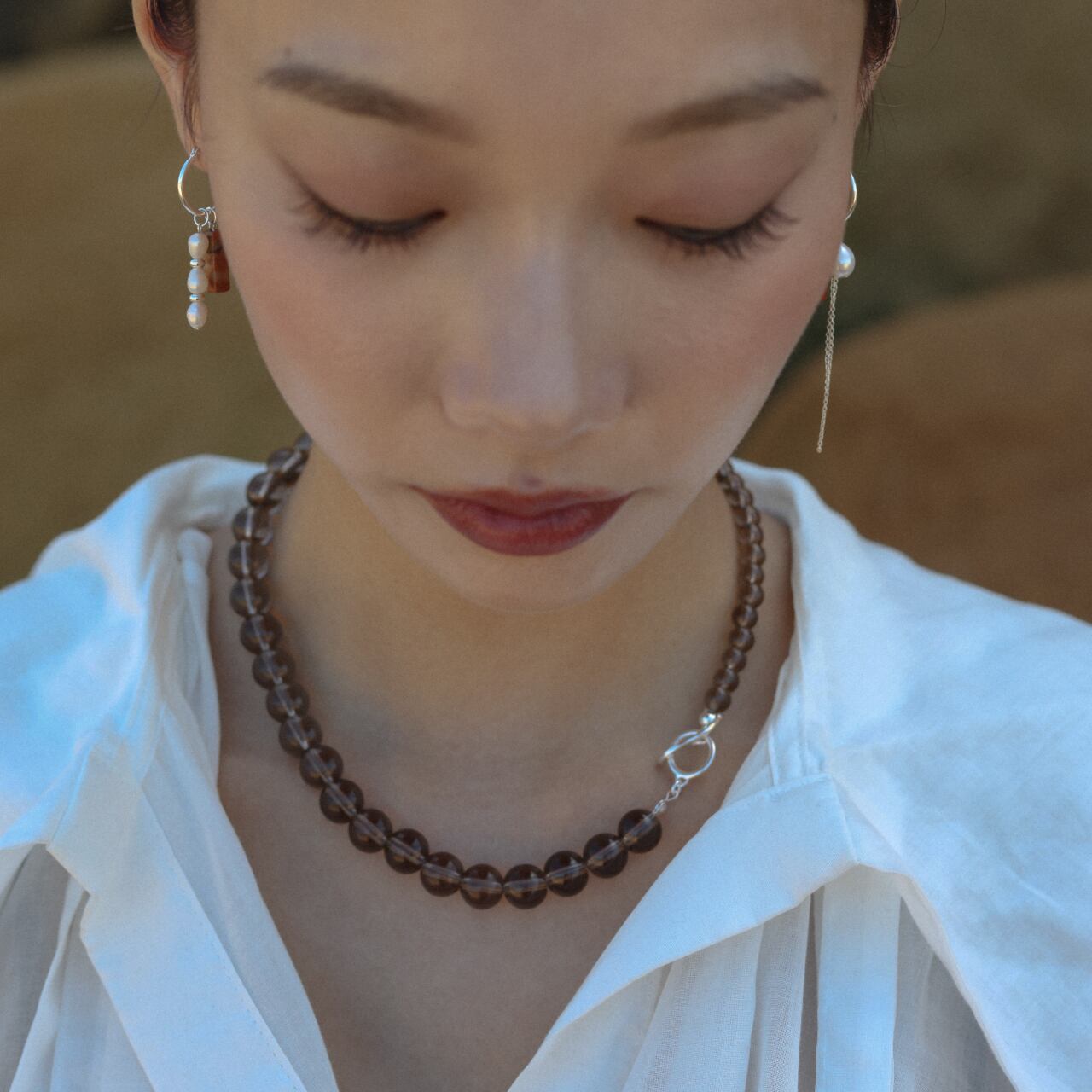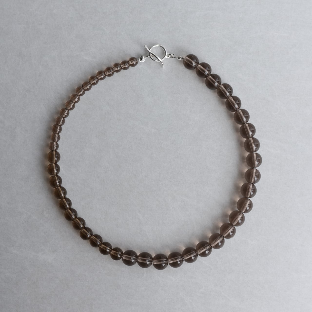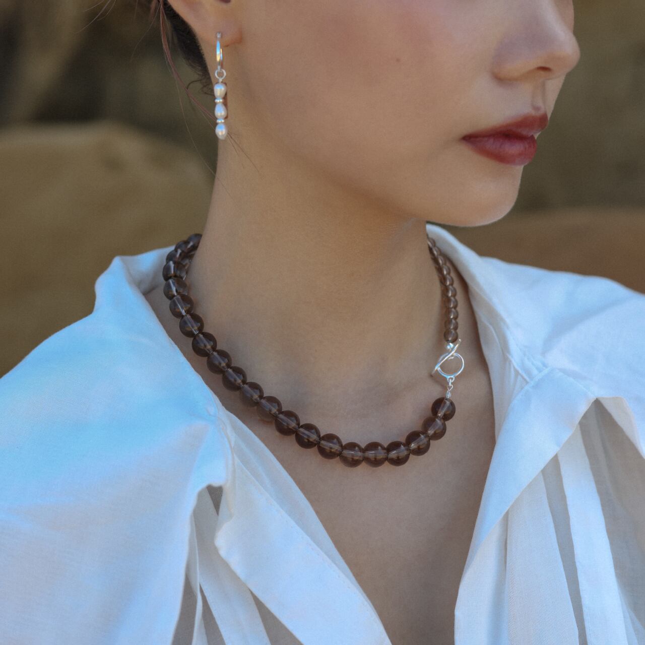 グラデーションに連なるスモーキークォーツが、首元を上品に彩るチョーカータイプのネックレス。