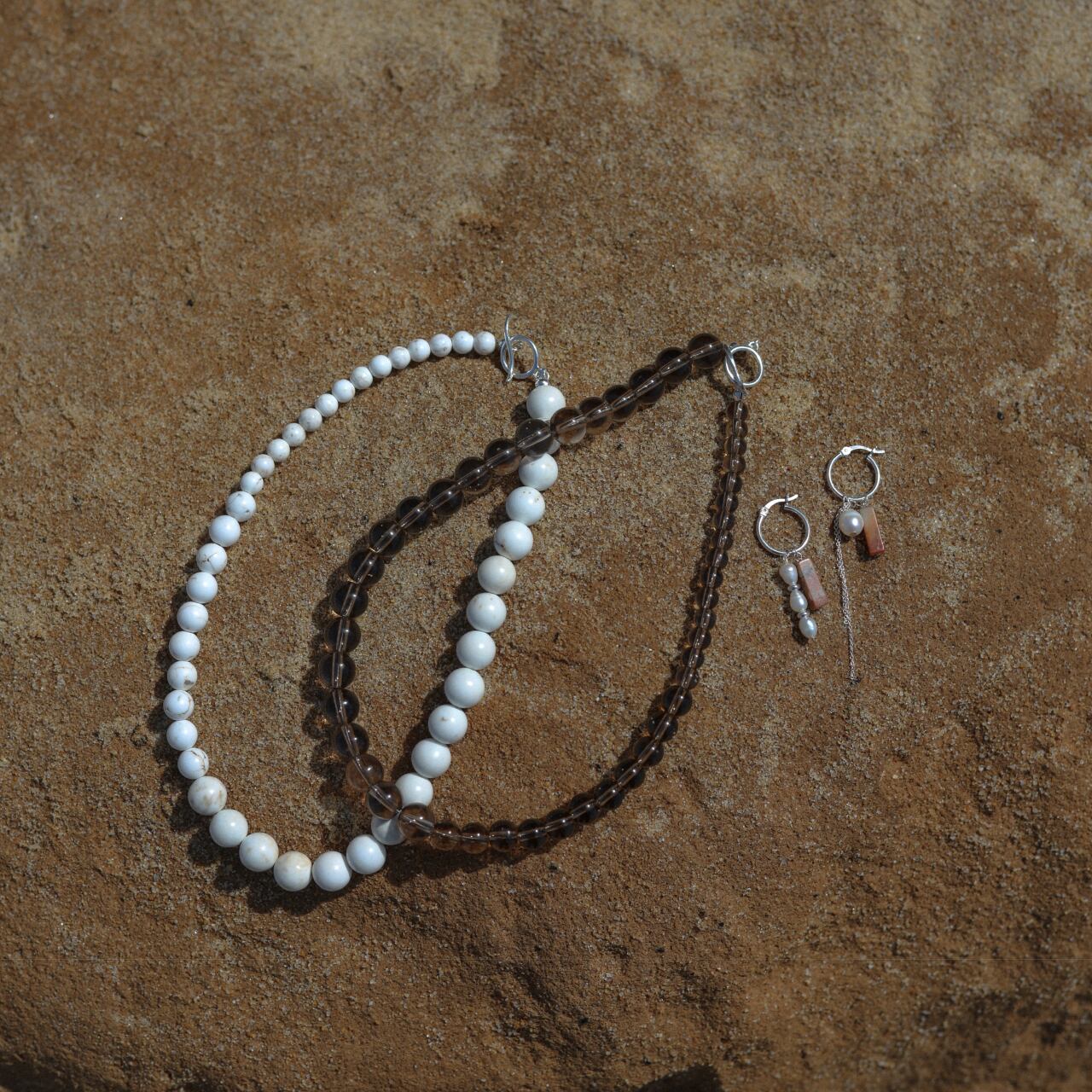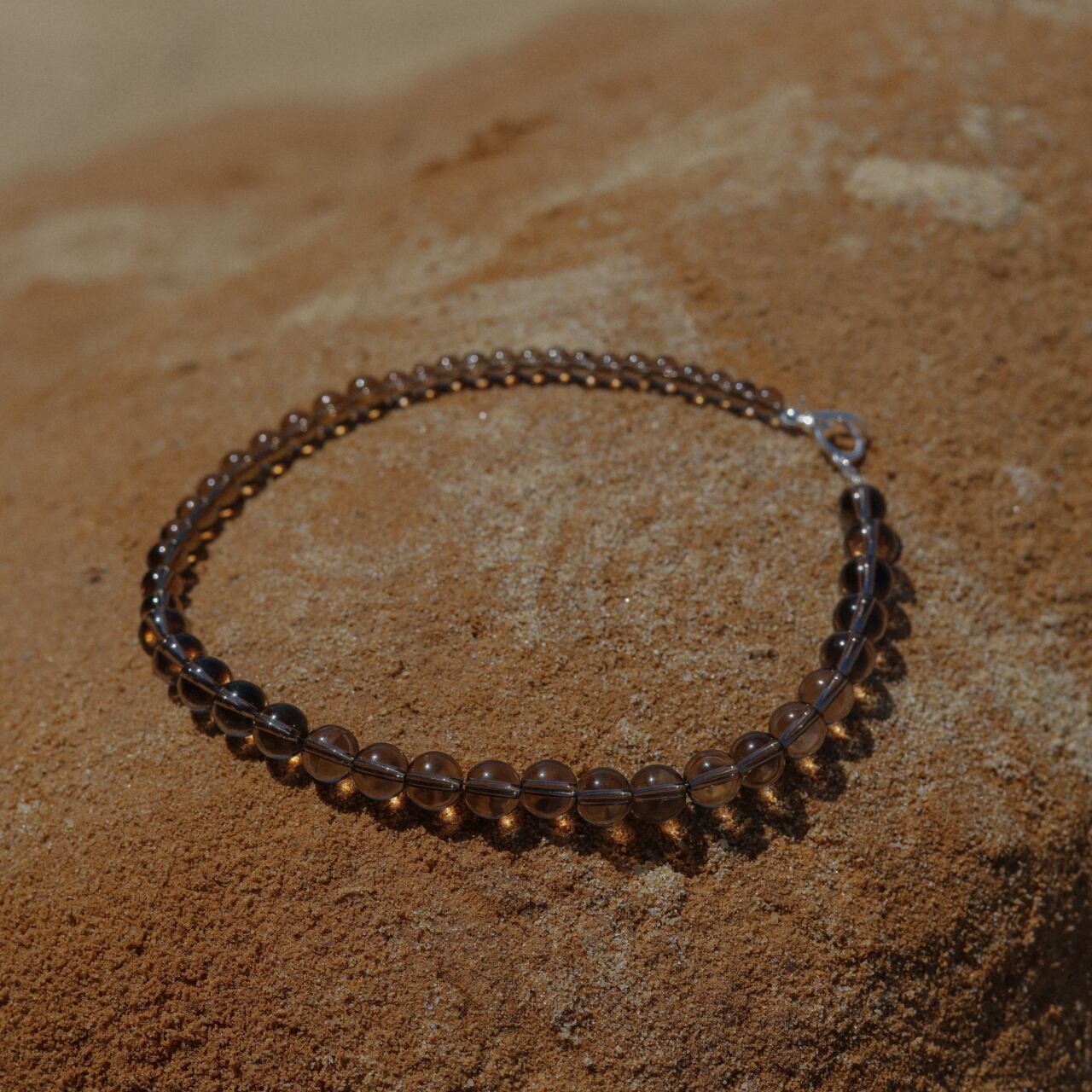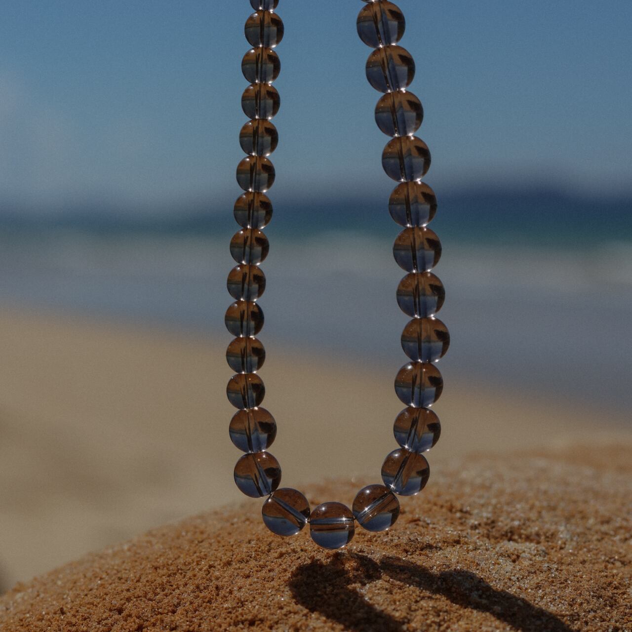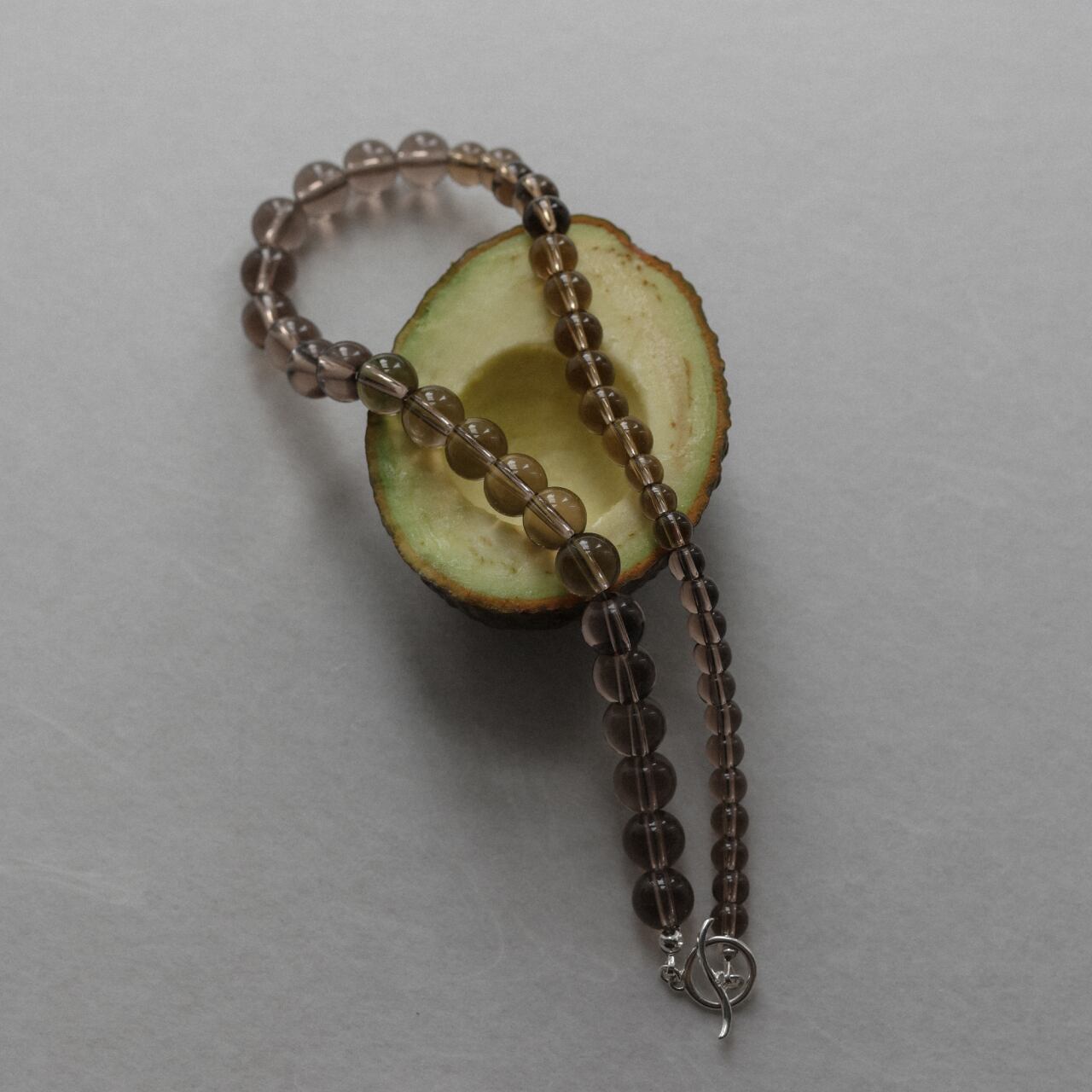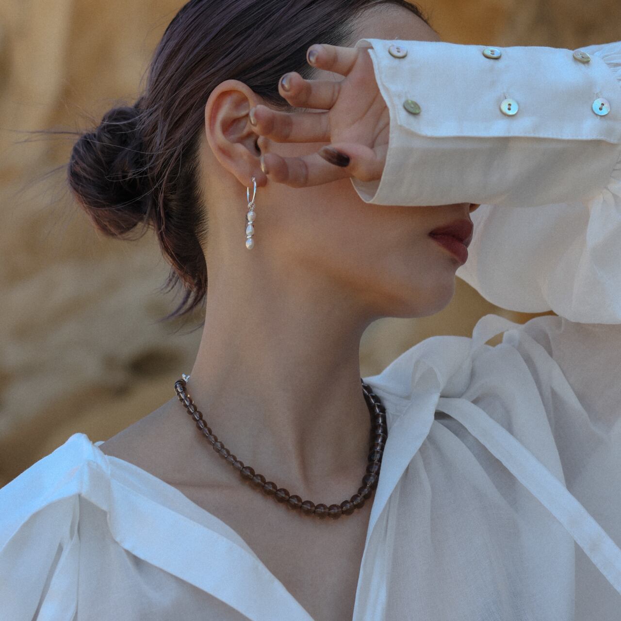 グラデーションに連なるスモーキークォーツが、首元を上品に彩るチョーカータイプのネックレス。