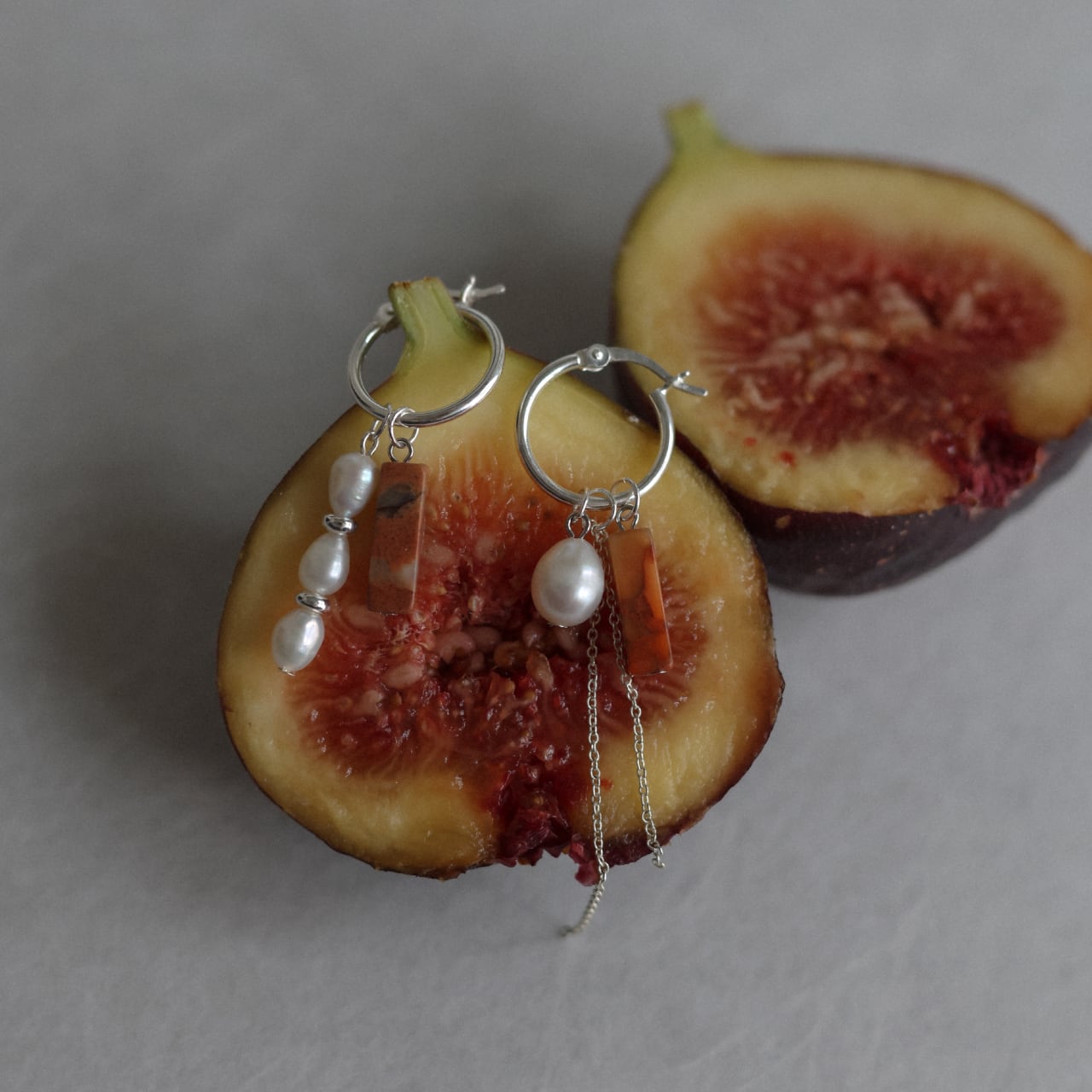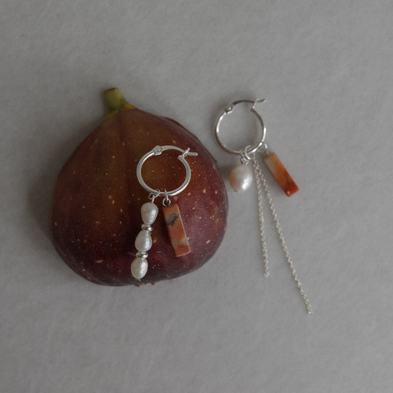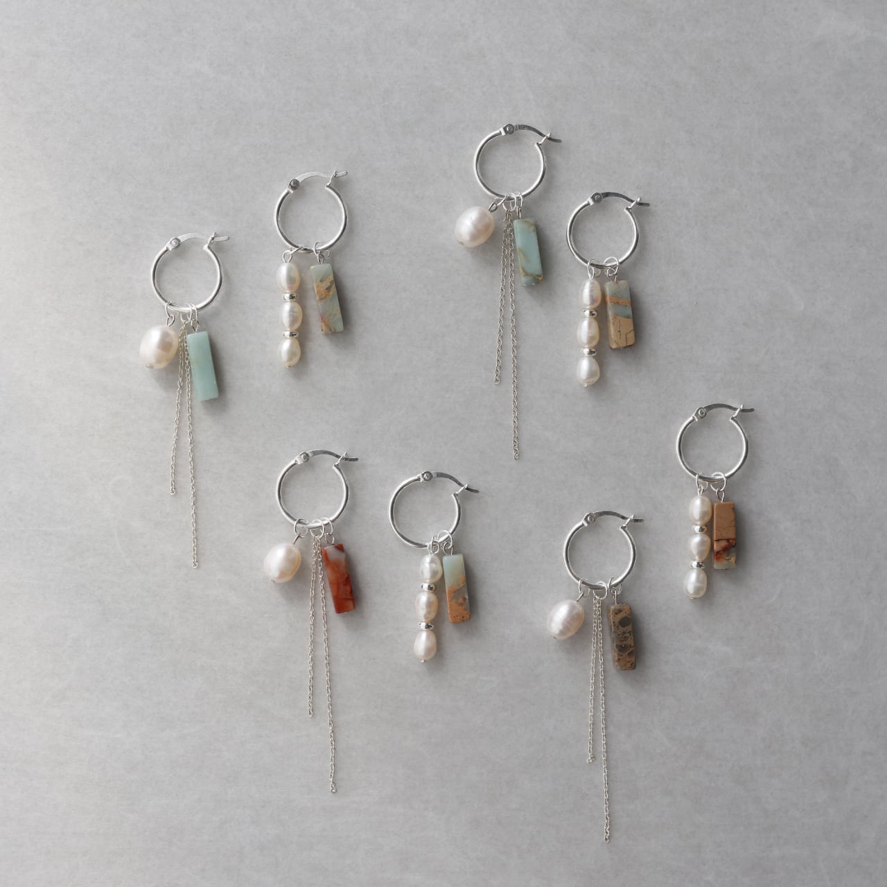 天然石は一つひとつ模様が異なり、世界にひとつだけのピアスとしてお楽しみいただけます。