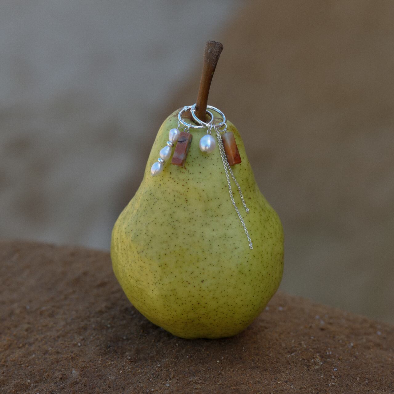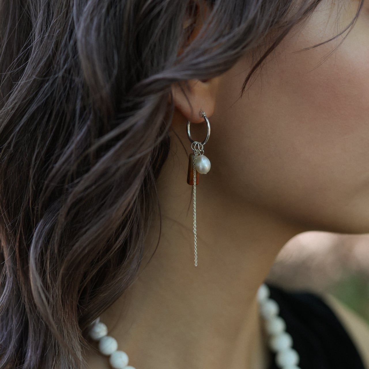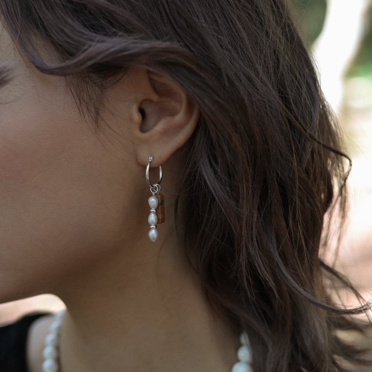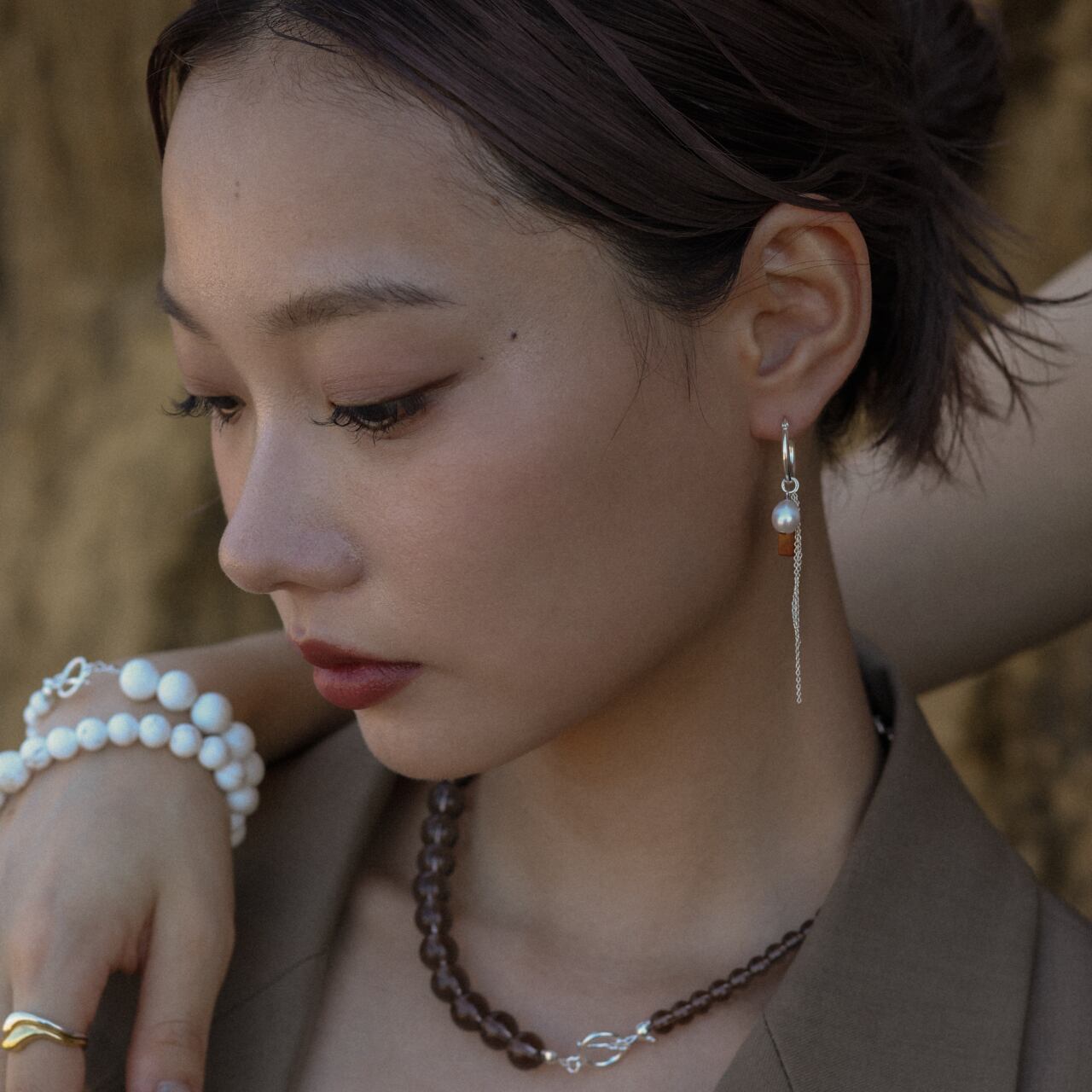 インプレッションストーンと淡水パールを組み合わせ、ナチュラルでありながら洗練された存在感に。