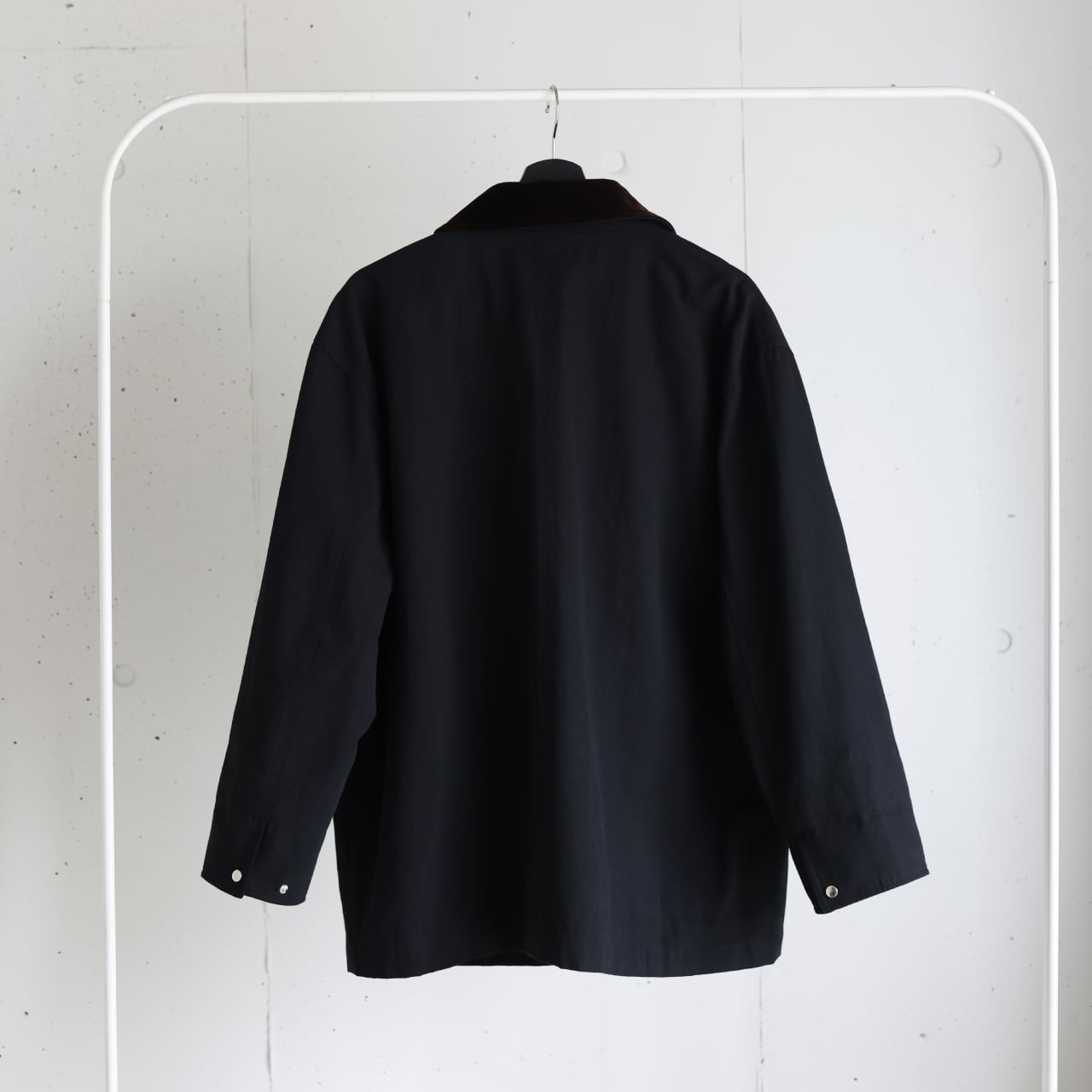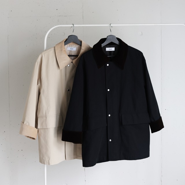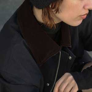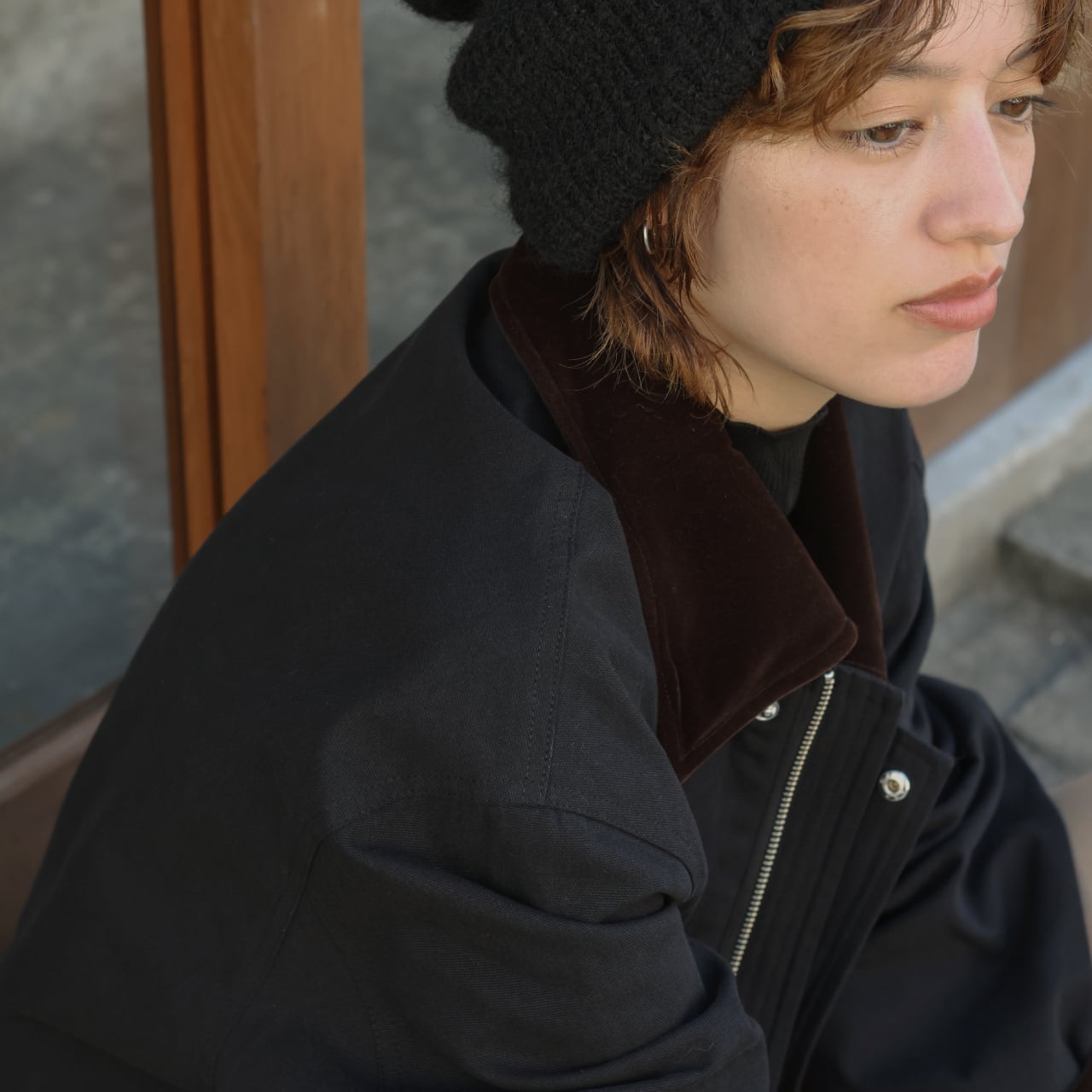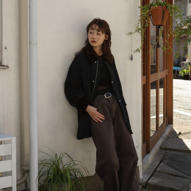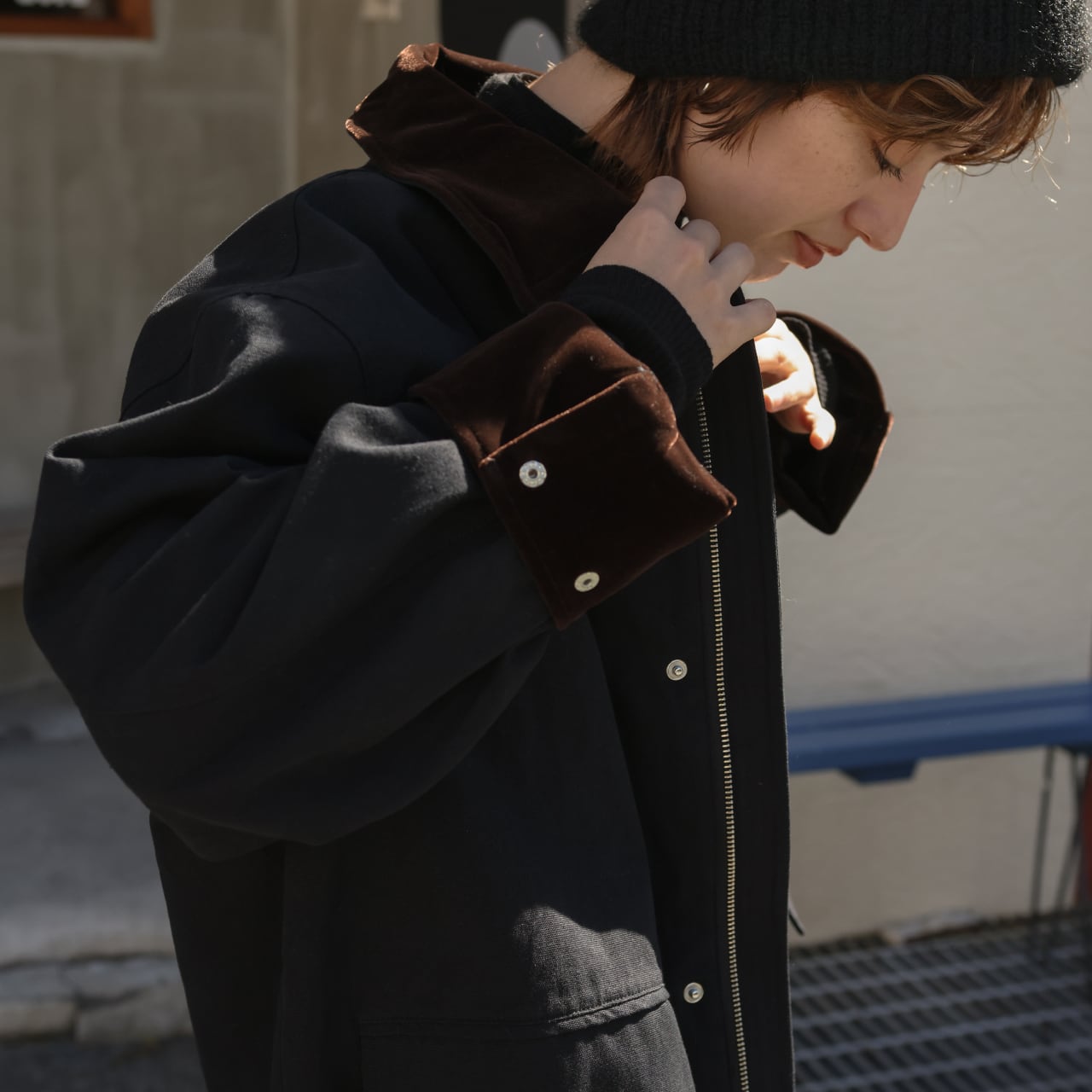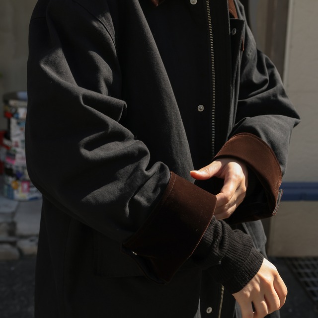 ブラックをベースに、襟と袖口にブラウンを配した落ち着いた配色が魅力です。