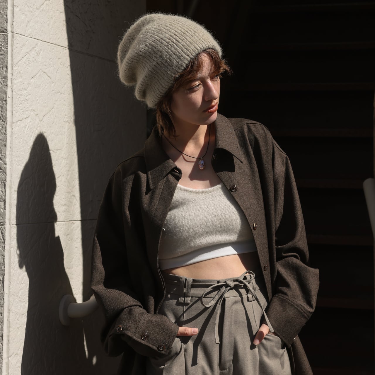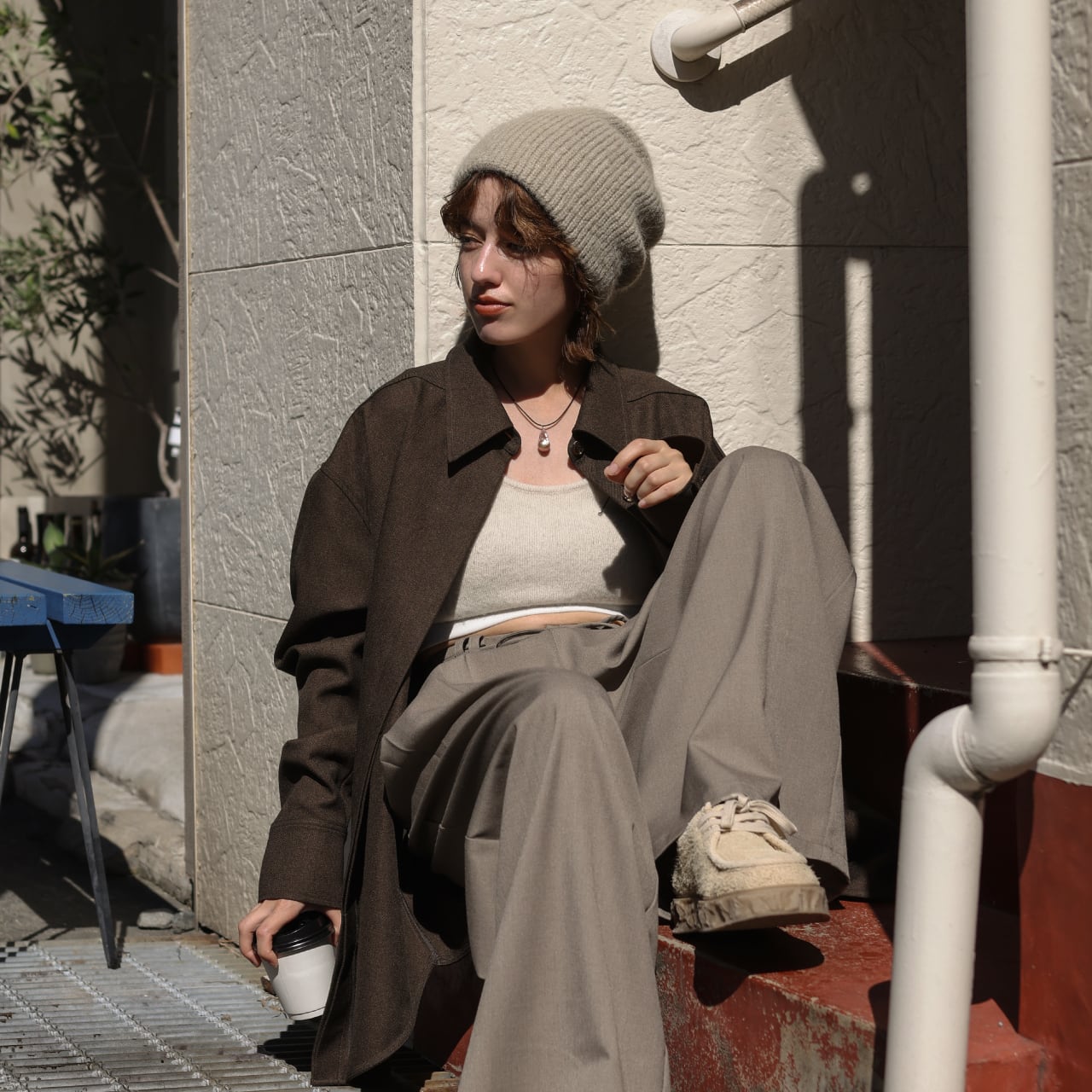 長めの丈感とフライフロント仕様で、シンプルながらも上品な印象に仕上げました。