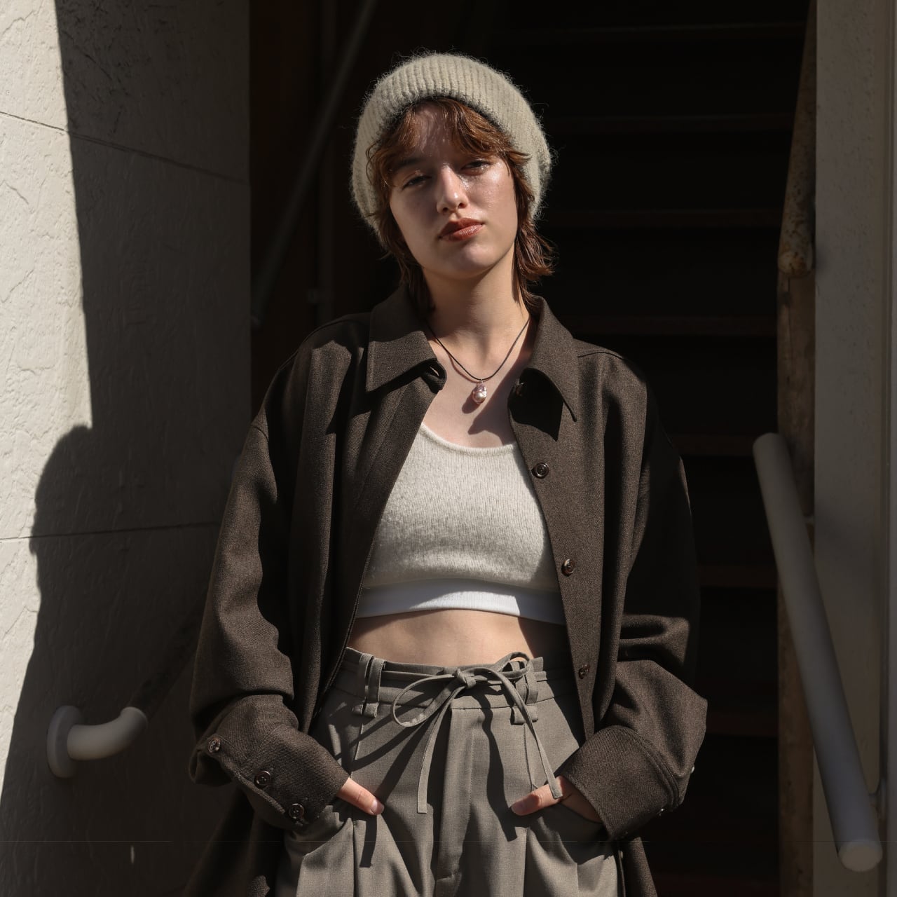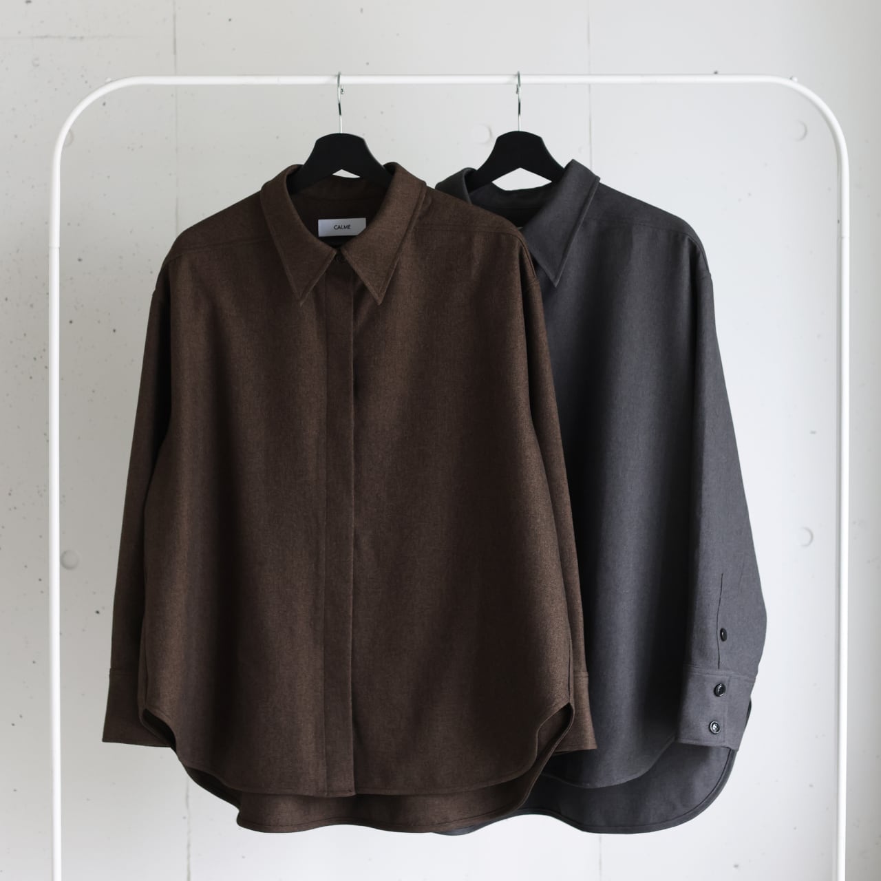 厚手で肉厚な生地感が特徴で、一枚で着ても存在感があり、軽いアウターとしても活躍。
