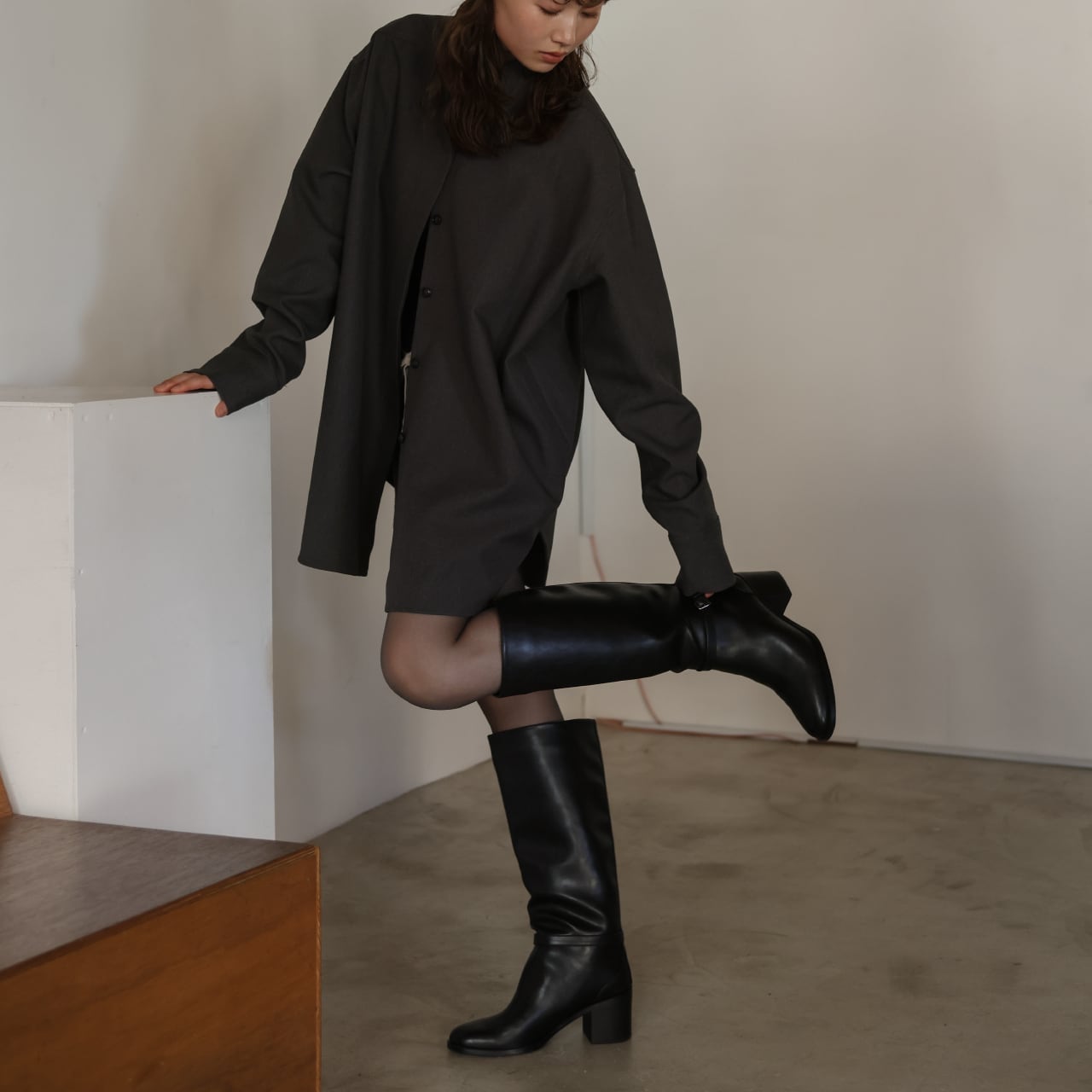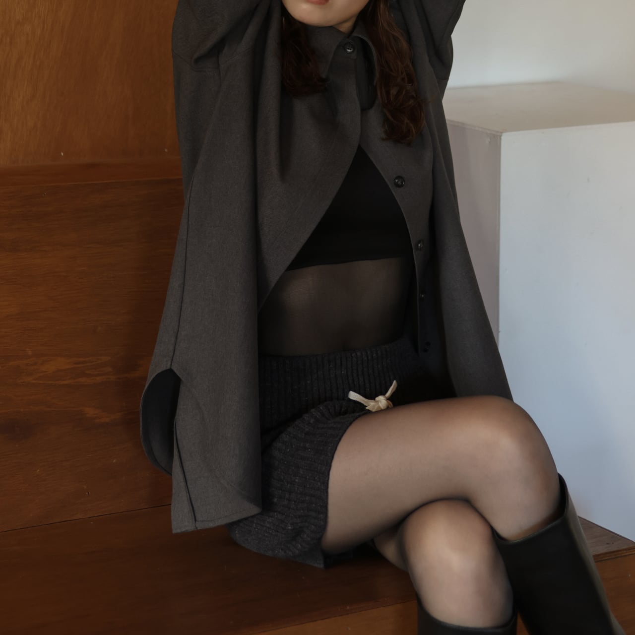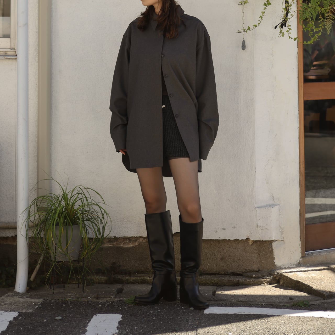 長めの丈感とフライフロント仕様で、シンプルながらも上品な印象に仕上げました。