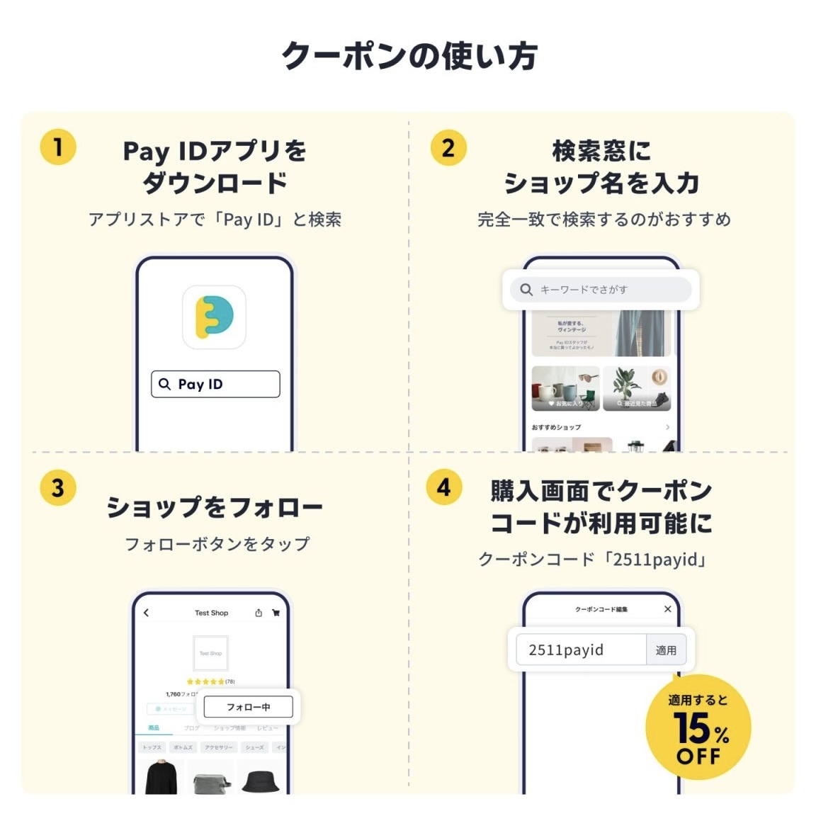 ※「Pay IDアプリ」上で、ショップをフォローすることが条件になります。
