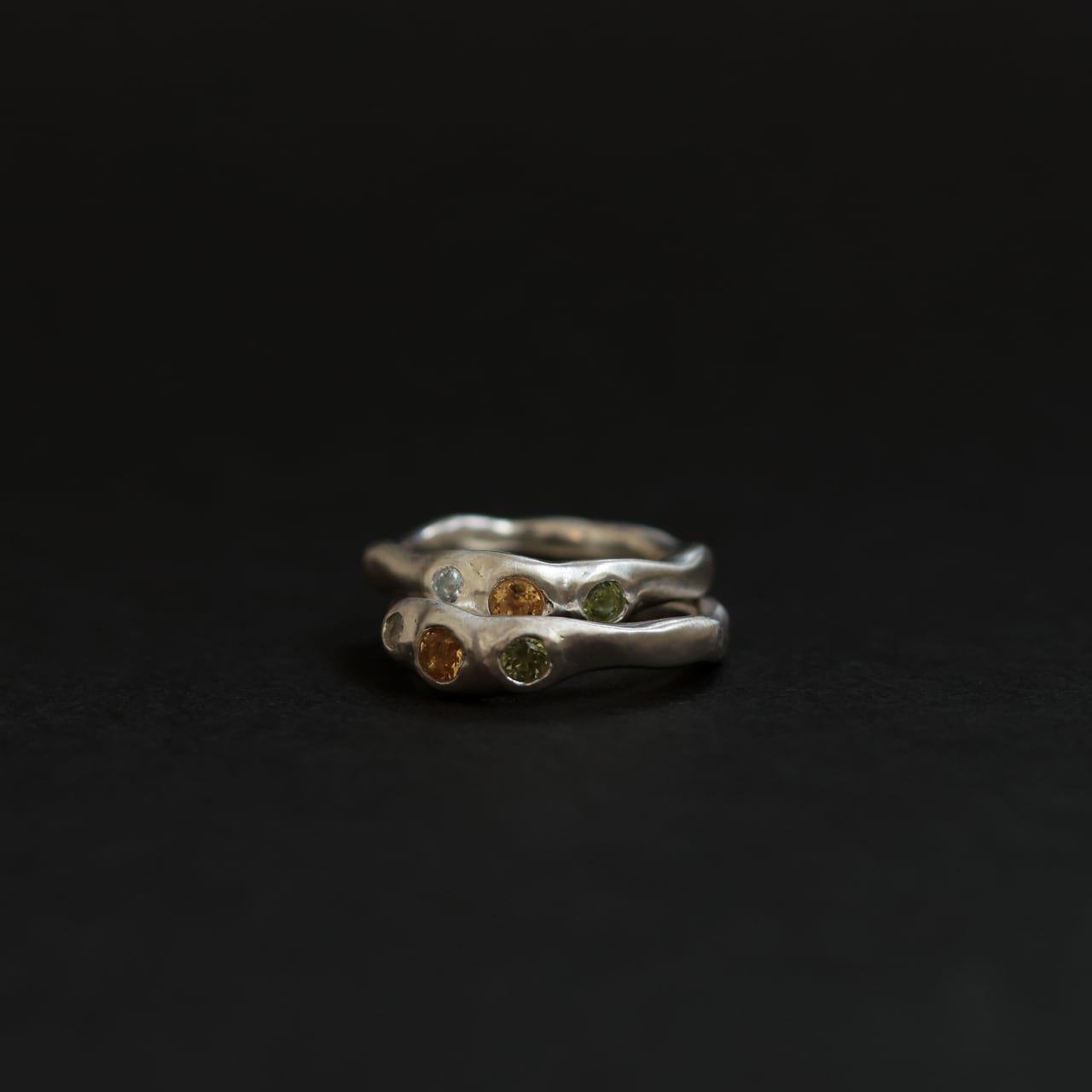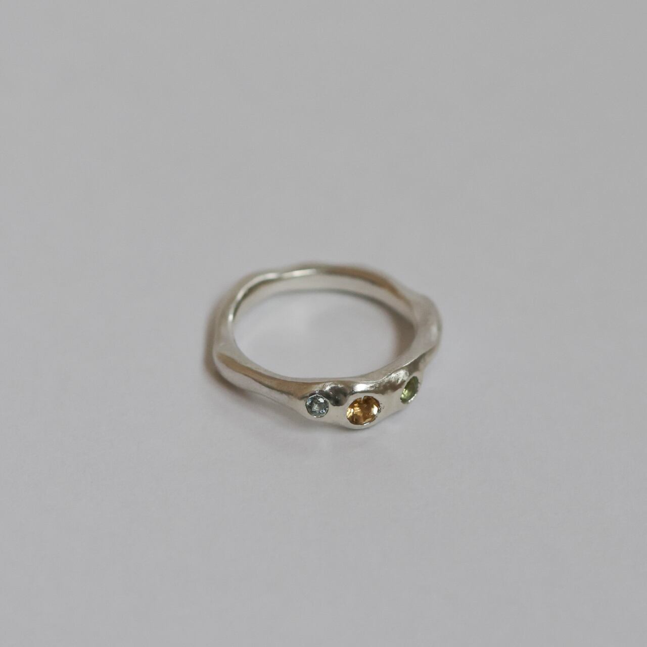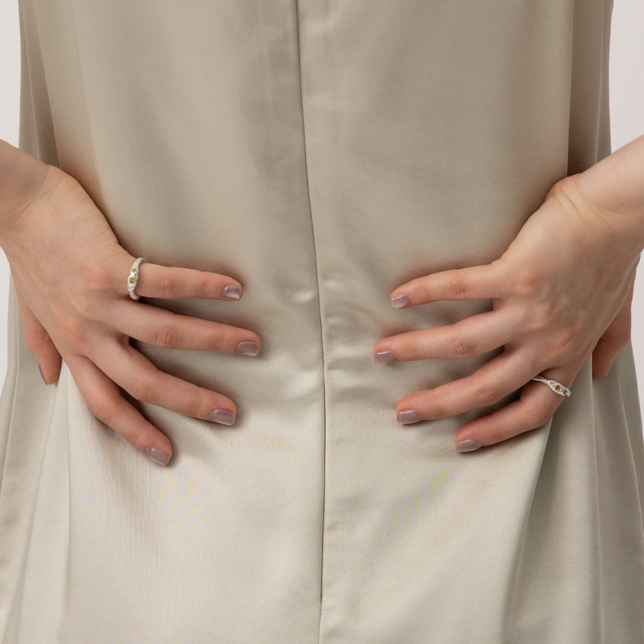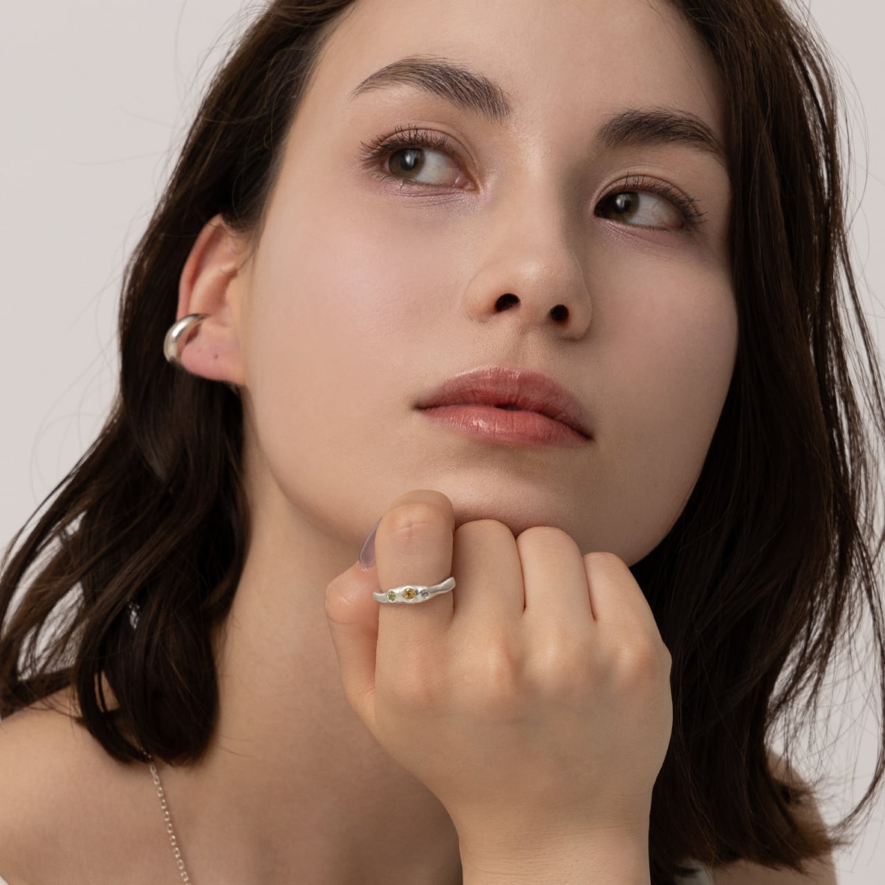 3つの石が程よい存在感を生み、重ね付けはもちろん、1本でも手元にさりげない華やかさを添えてくれます。