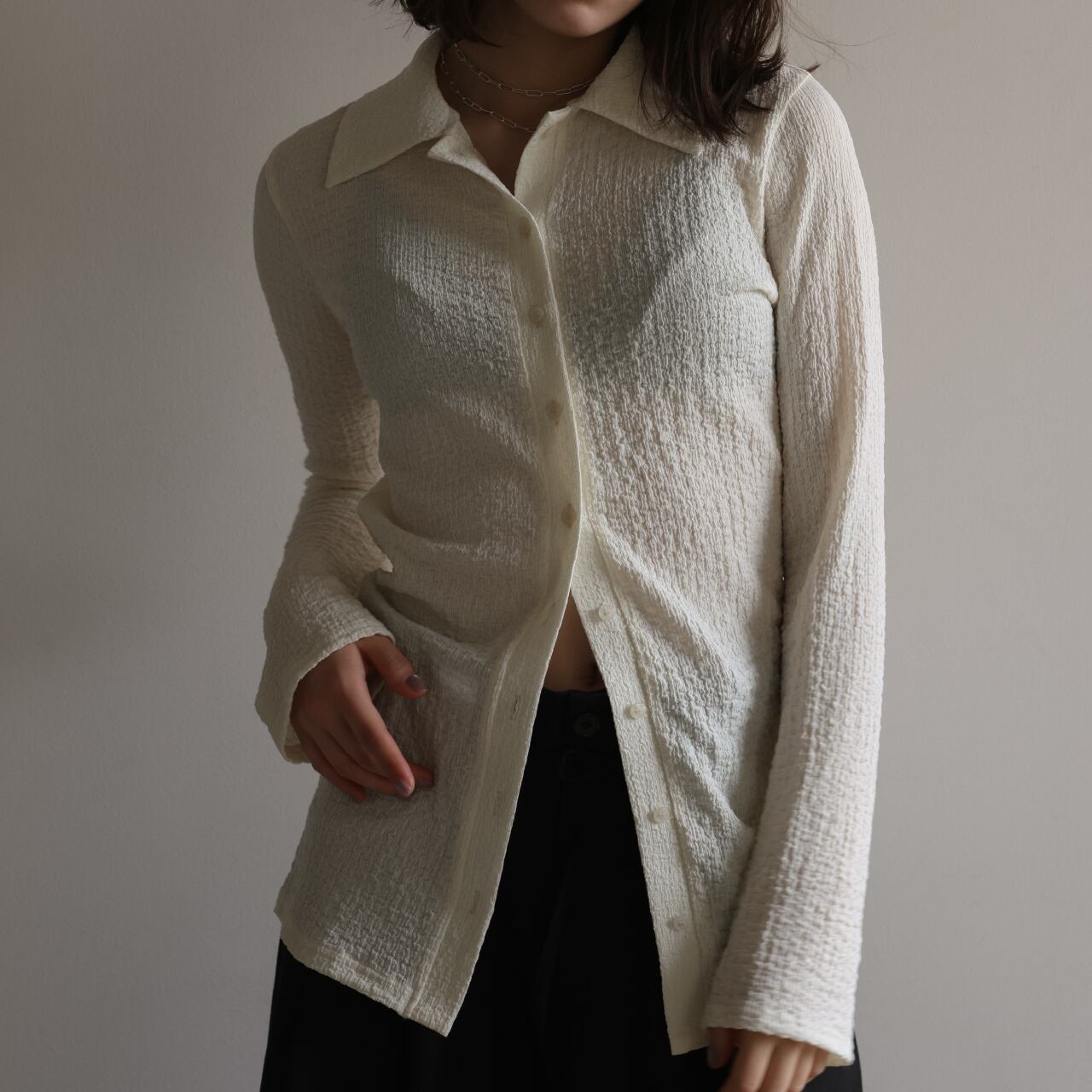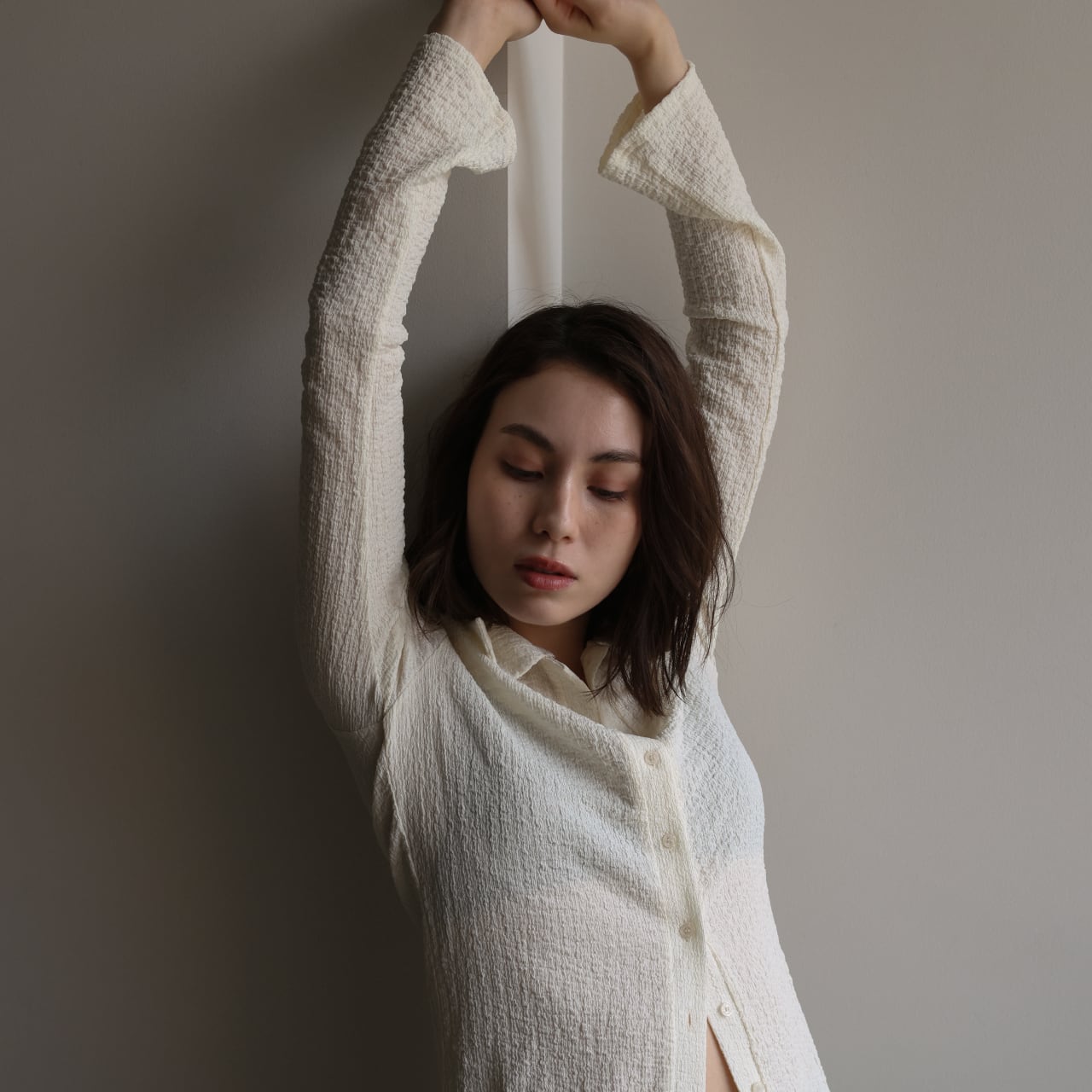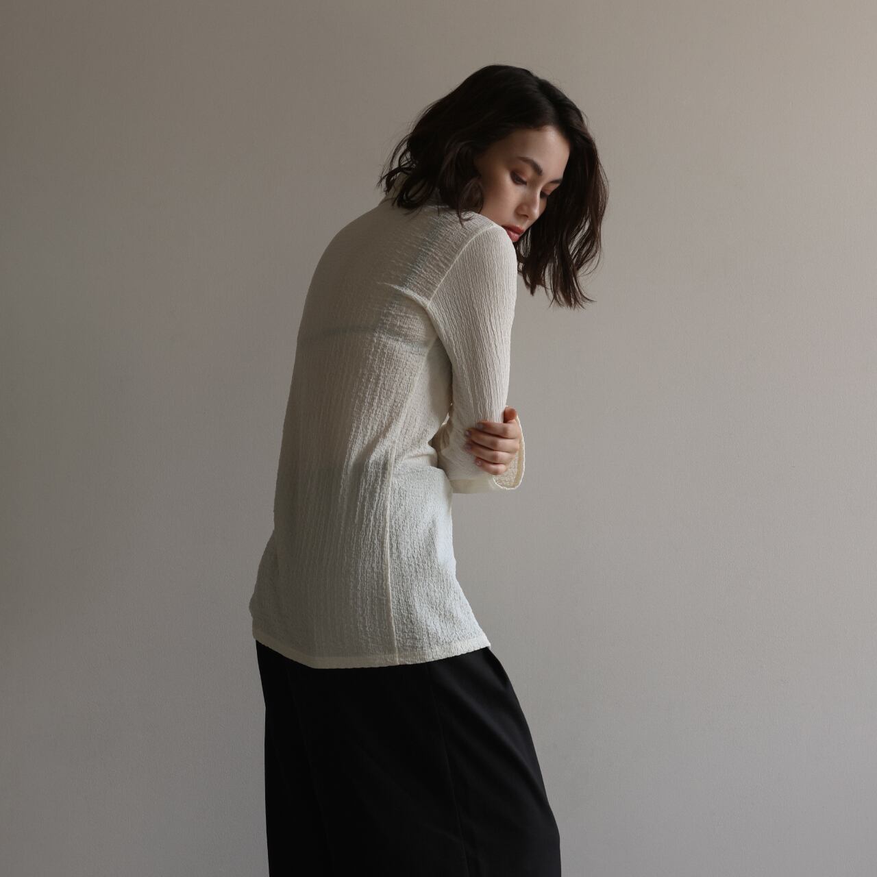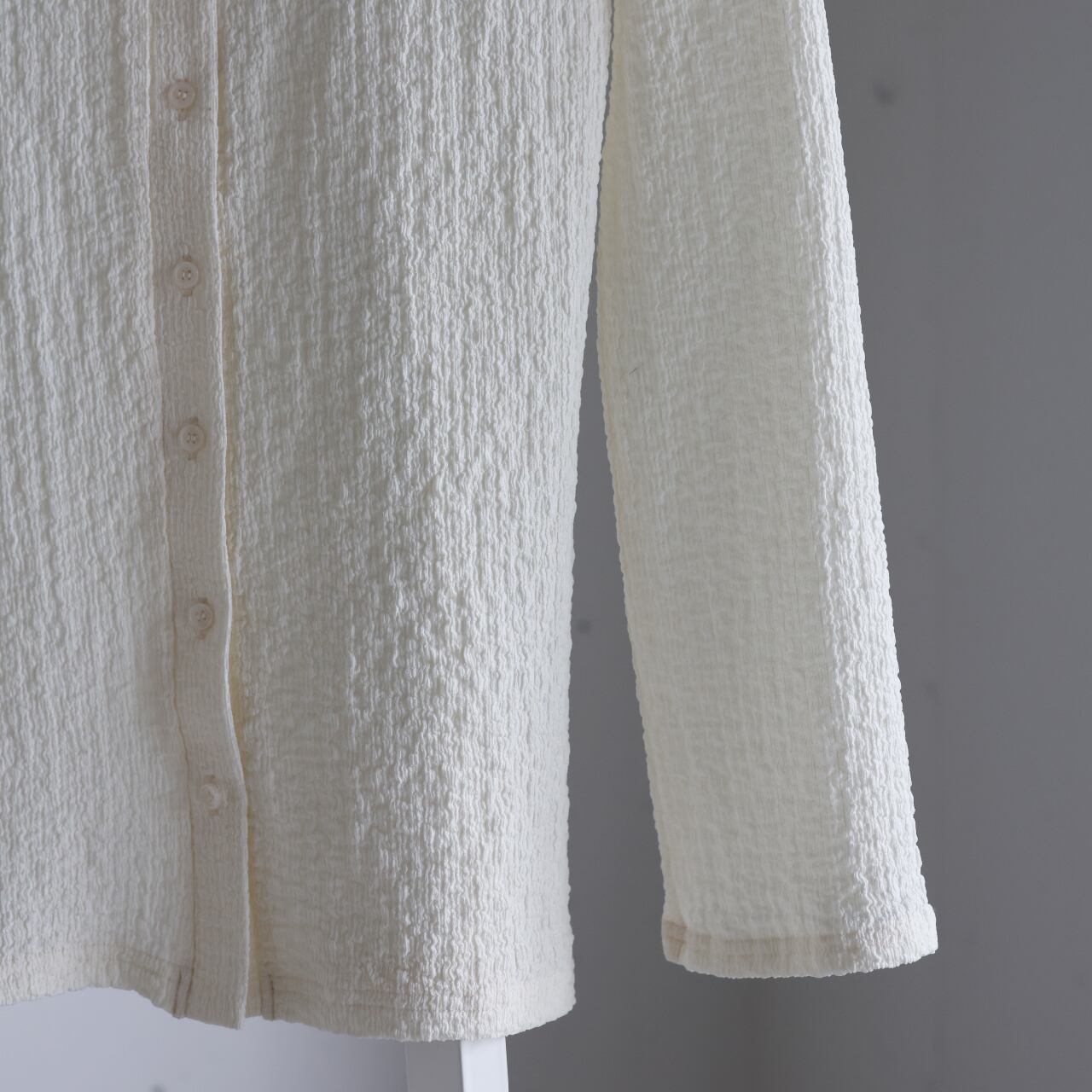 袖口はさりげなく広がるフレアデザインで、動きに軽やかさと女性らしさをプラス。