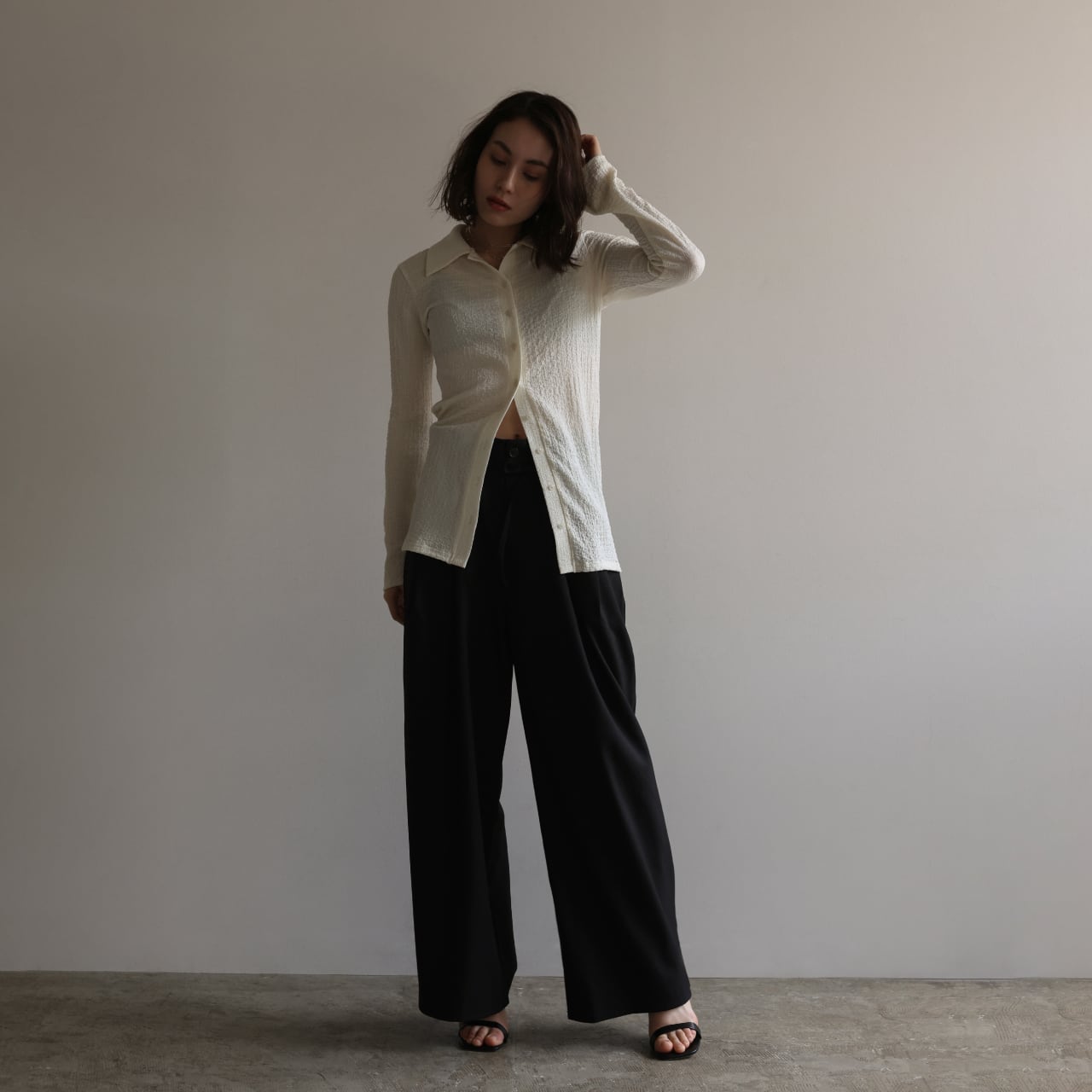 シンプルながらも一枚でスタイリングが引き締まる、着回し力の高いアイテムです。