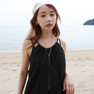 2種類のチェーンとオリジナルパーツを組み合わせた自由なアレンジが楽しめる3way仕様のネックレスアイテム。首元を綺麗に見せてくれる”Y字型ネックレス”としても、胸元を華やかに飾る”ロングネックレス”としても、シンプルな”ショートネックレス”としても使用可能。オールシーズンで使えて、カジュアルからフォーマルまで幅広いシーンに活躍します。